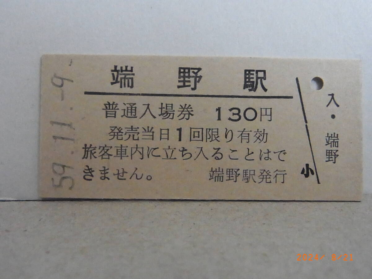 - ■無人駅化前最終日■ 国鉄 石北本線 端野駅 130円普通入場券 昭59.11.9 0737 ★送料無料★