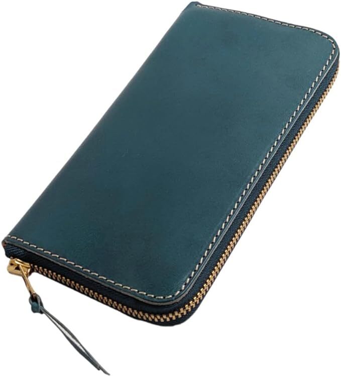- 箱無しで激安 栃木レザー ラウンドウォレット 長財布 メンズ レディース 日本製 YKK 本革 牛革 ブルー