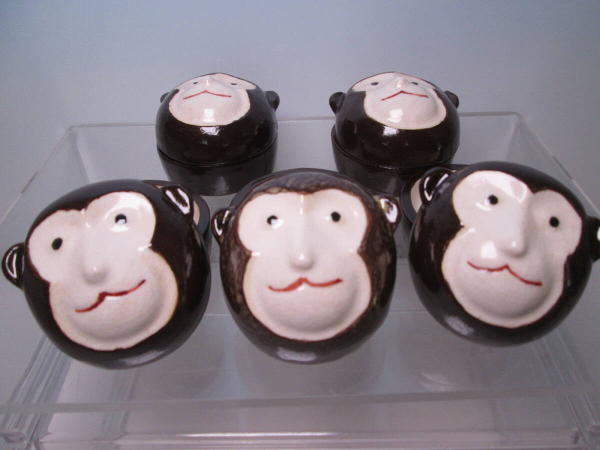 - ☆お料理屋さんの器 正作 お猿さんの珍味入れ 五客 箱付き 小蓋向付/懐石/割烹料理