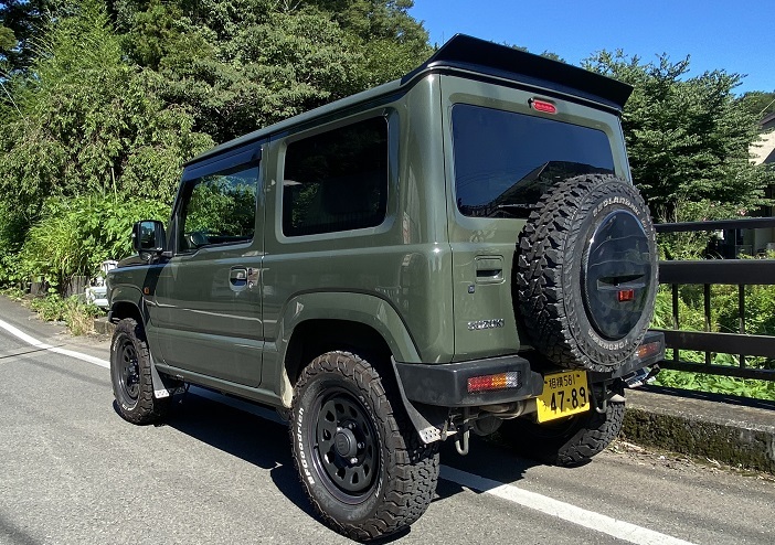 - 未塗装 JB64w JB74 ジムニー シエラ FRP 日本製 跳ね上げ リア ウィング ルーフ ゲート スポイラー ボディの穴あけ不要です