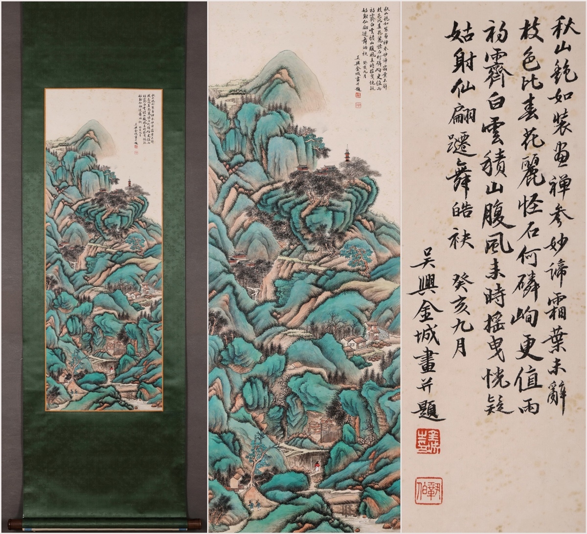 - 古美術 掛け軸 中国・近現代 「金城書」 紙本 【秋山トレーサー図】 立軸 書道 巻き物 真筆逸品 肉筆保証 唐物 古画 LT-2408284