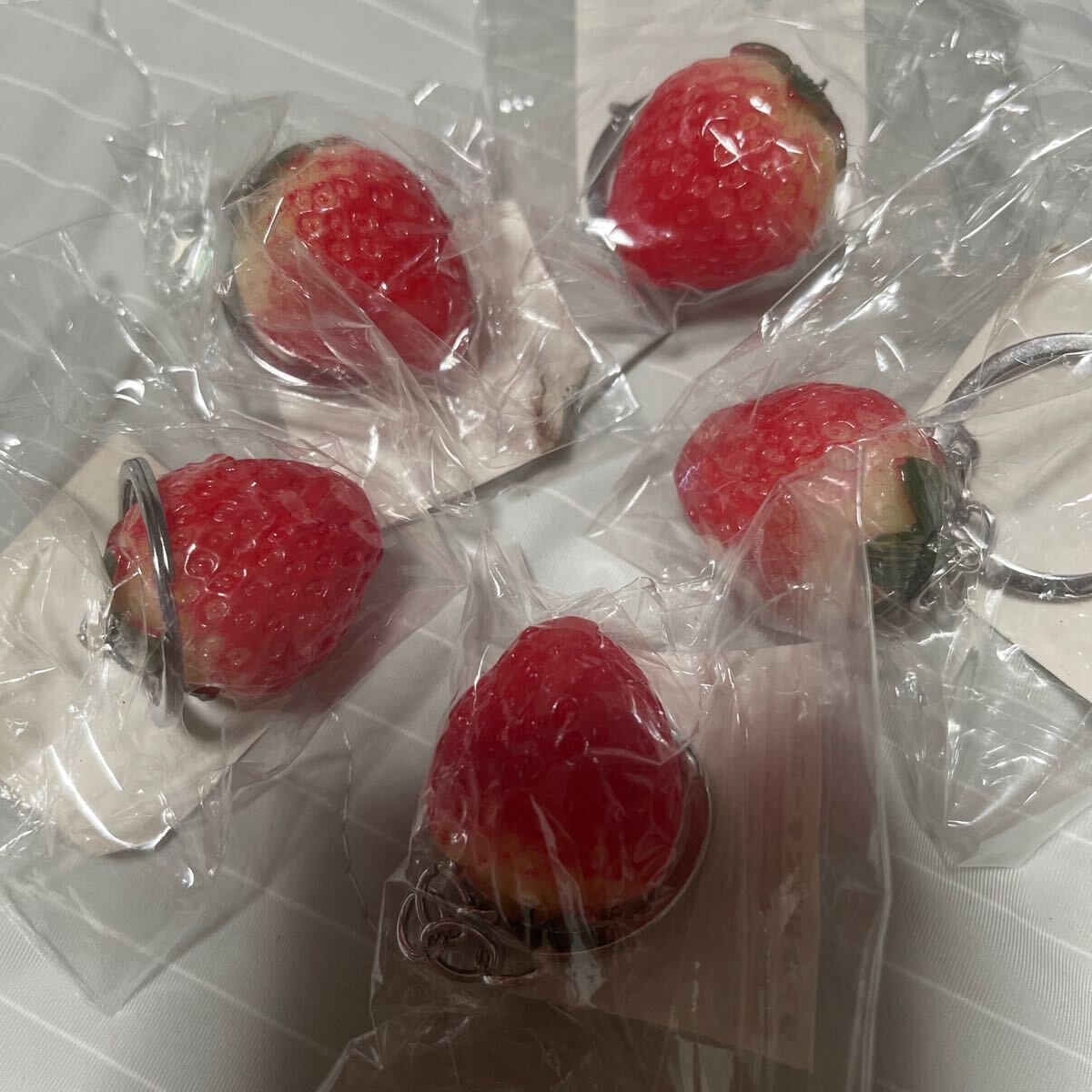 - 5個セット リアル いちご キーホルダー 苺 イチゴ 食品サンプル とちおとめ かわいい イチゴ狩り 未使用 新品