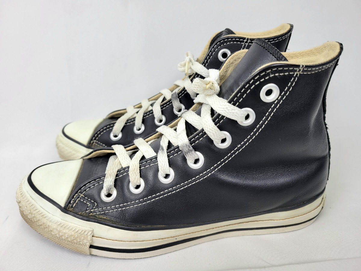- 良好 90s USA製 converse allstar hi leather 黒 US4 22.5cm 90年代 アメリカ製 コンバース オールスターハイ レザー 本革 ビンテージ