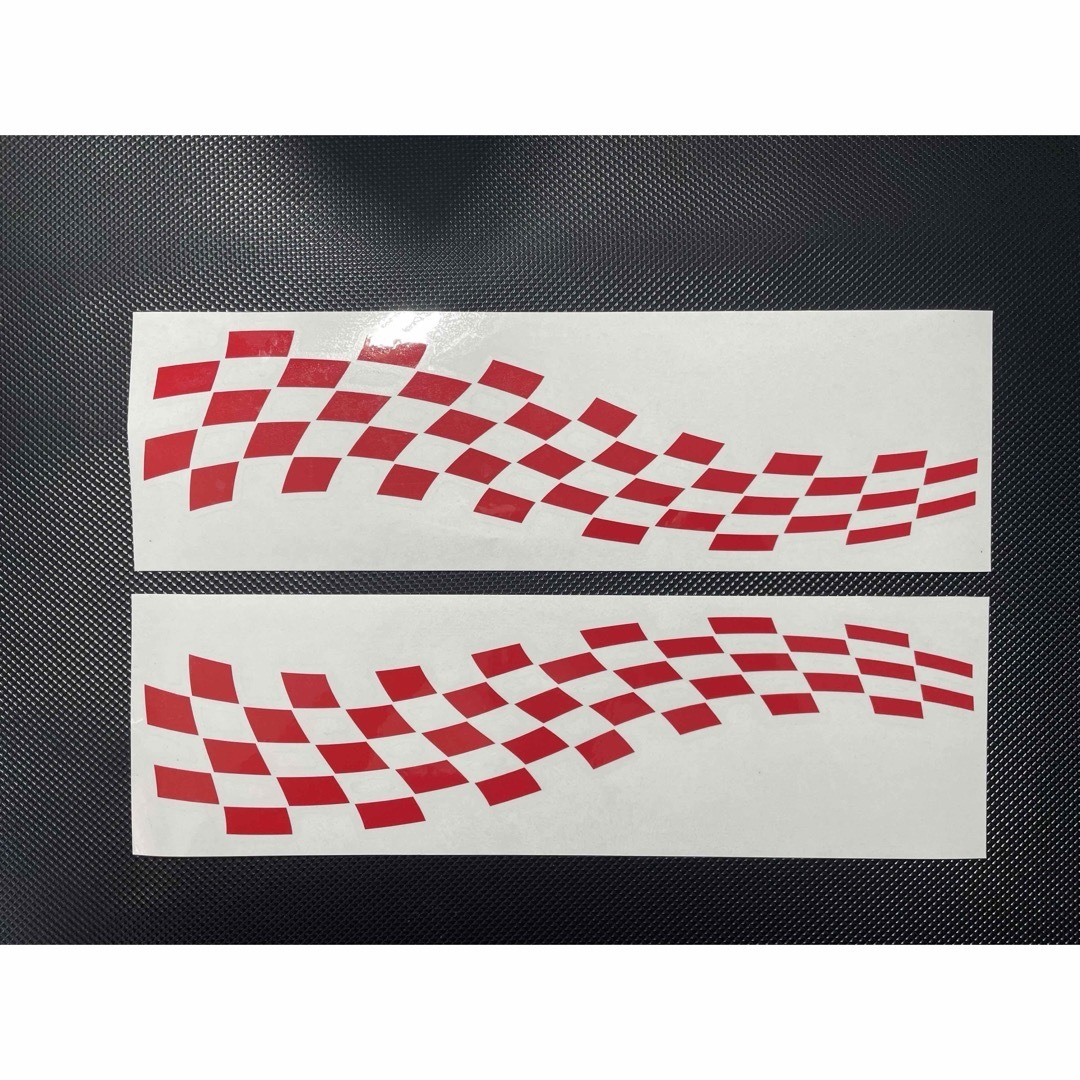 - チェッカーフラッグ ステッカー 転写シール 左右セット 赤色