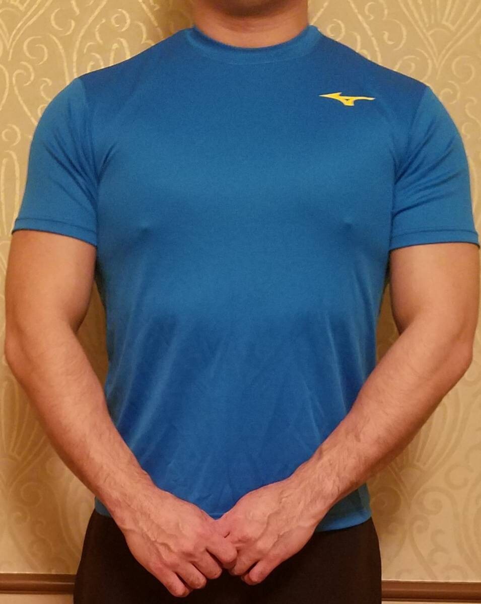 > MIZUNO ミズノ Tシャツ メッシュ生地 メンズMサイズ プール監視員 バックミズノマーク 蛍光 スポーツマン 鮮やか マッチョ 水泳競泳