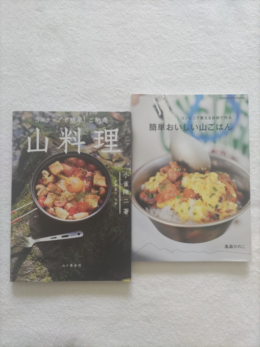 - 山ごはん2冊「3ステップで簡単!ご馳走 山料理/小雀陣二」「コンビニで買える材料で作る 簡単おいしい山ごはん/風森ひのこ」