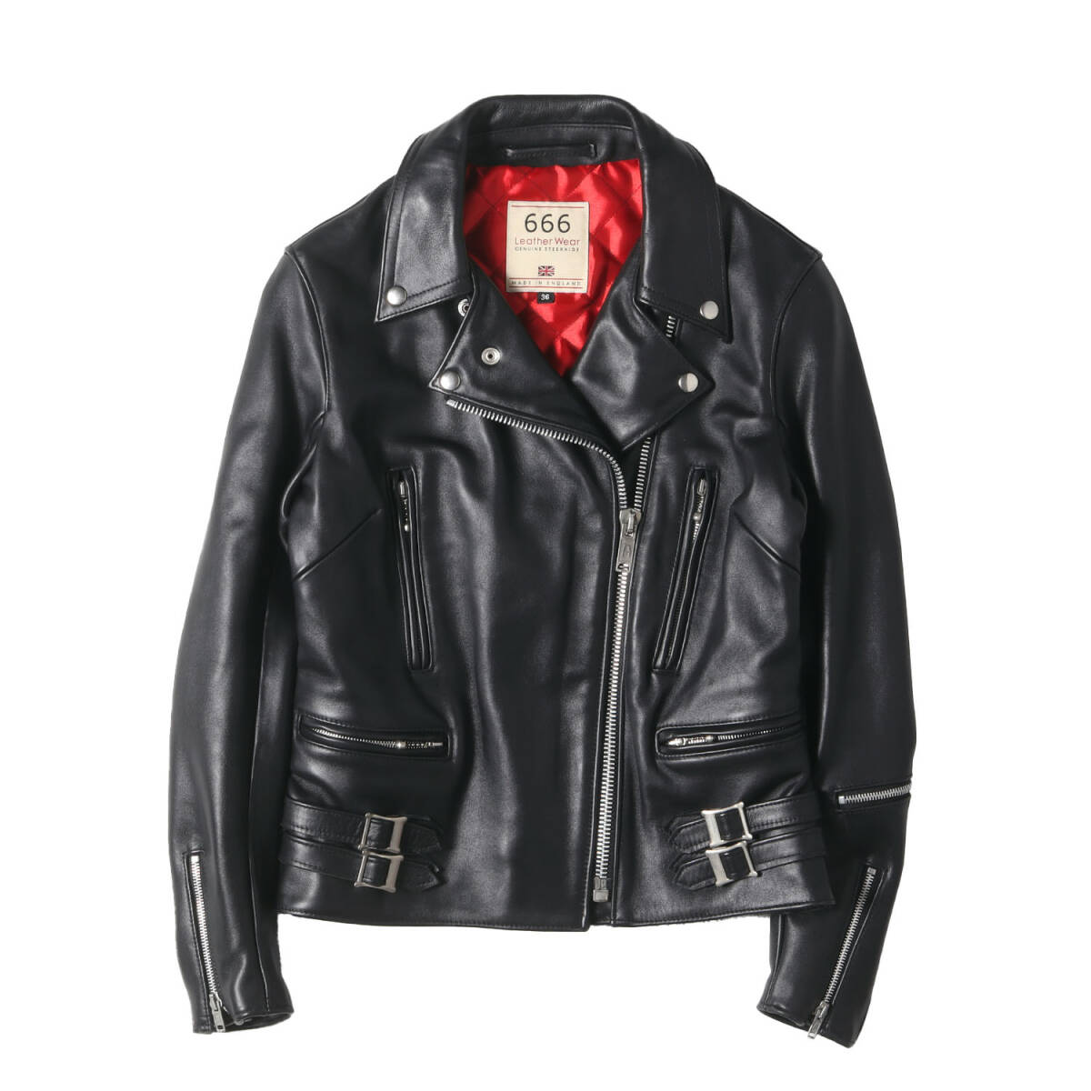 - 666 トリプルシックス ジャケット サイズ:36 ステアハイドレザー サイドベルト ダブル ライダースジャケット ブラック 黒 UK製 アウター