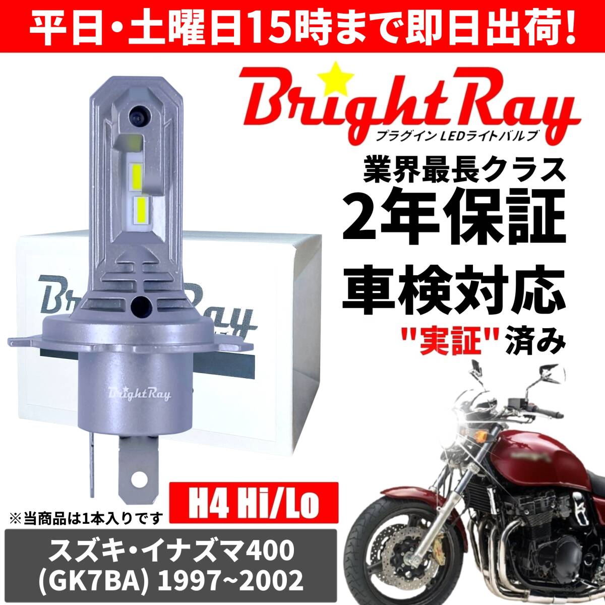 - 送料無料 2年保証 スズキ イナズマ400 GK7BA LED ヘッドライト BrightRay バルブ H4 Hi/Lo 6000K 車検対応 ハロゲンから簡単交換
