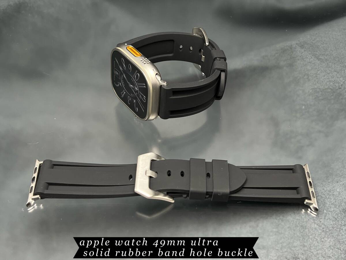 - ブラック 24mm 幅 アップルウォッチ ラバー ベルト ソリッド バンド ストラップ 49mm ウルトラ ULTRA ホールバックル applewatch
