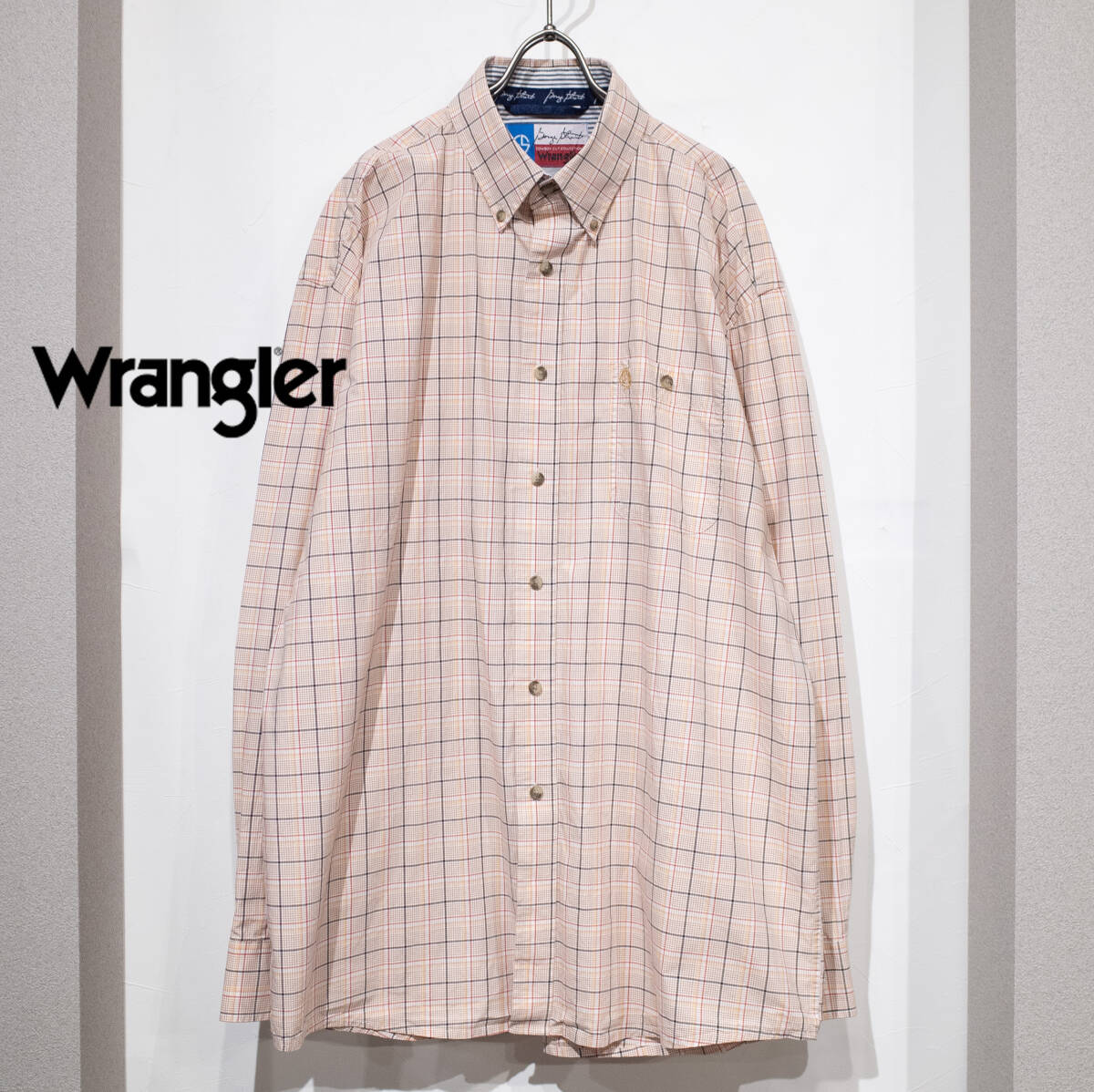 > XL相当 / Wrangler ラングラー ボタンダウン 長袖シャツ チェック柄 ベージュ ビッグ オーバーサイズ 古着 メンズ アメカジ カウボーイ
