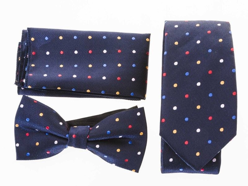 - メンズファッション ビジネス カジュアル ネクタイ×蝶ネクタイ×ポケットチーフ セット#青 水玉C