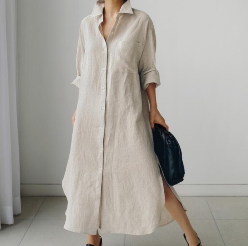 - 秋新品 /人気推薦 /ロングワンピース 綿麻 レディース ゆったり シャツワンピース マキシ丈 おしゃれ 着やせ 大きいサイズ/杏