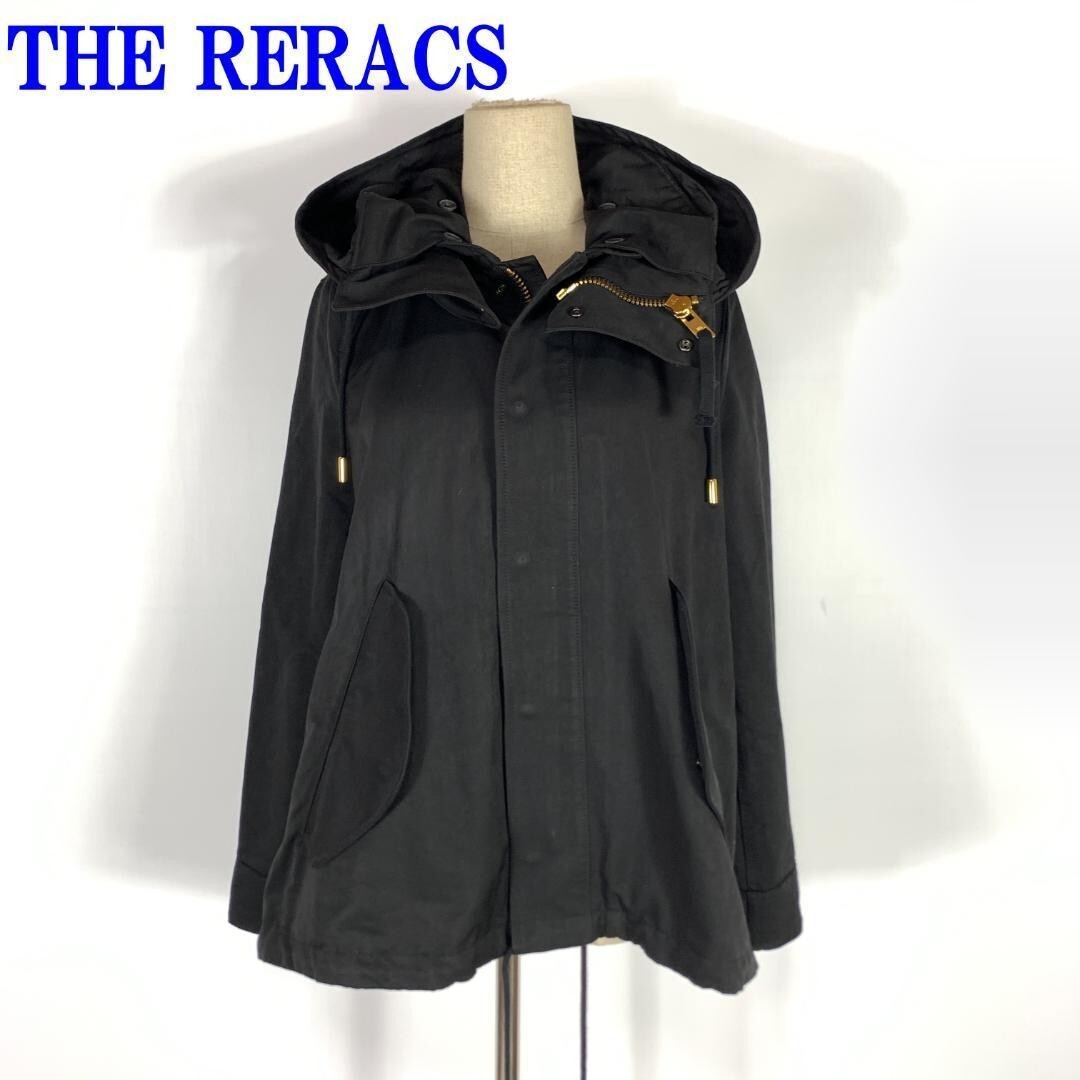 - ザ リラクス ジャンパー マウンテンパーカー フード付きTHE RERACS ブラック オープンファスナー フード取り外し可能 黒 34 C991