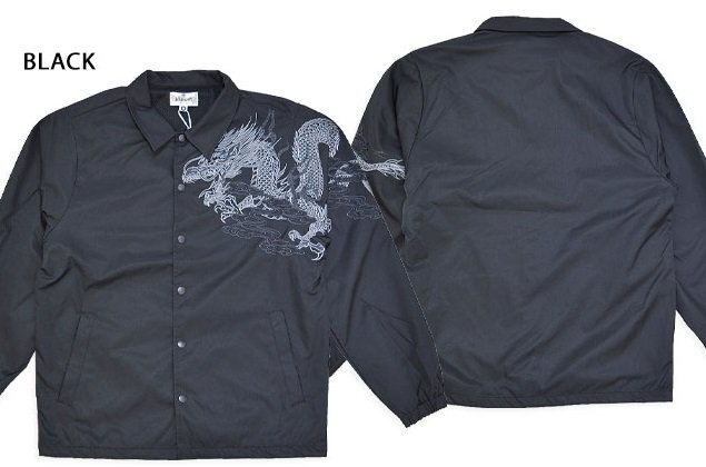 - 雲龍コーチジャケット◆絡繰魂 ブラックMサイズ 243086 和柄 和風 刺繍 竜 ドラゴン からくり