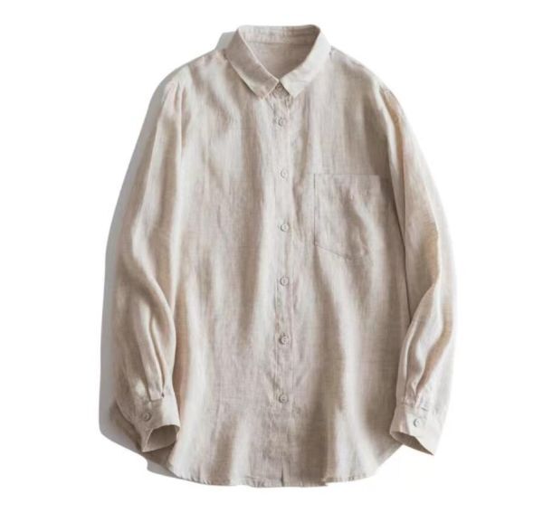 - 秋新品 * シャツ 大人 おしゃれ 大きいサイズ 通勤 シャツブラウス 長袖 綿麻風シャツ シンプル ゆったり 無地 トップス * 麻色