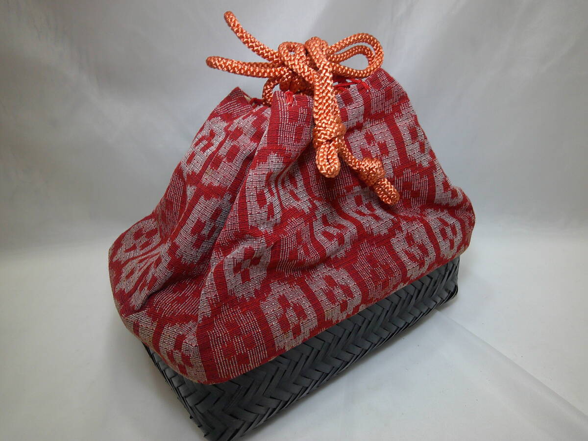 > 伊豫絣 巾着 浴衣 和服 竹細工 小物入れ 和装 愛知県 道後 昭和レトロ 竹細工 着物