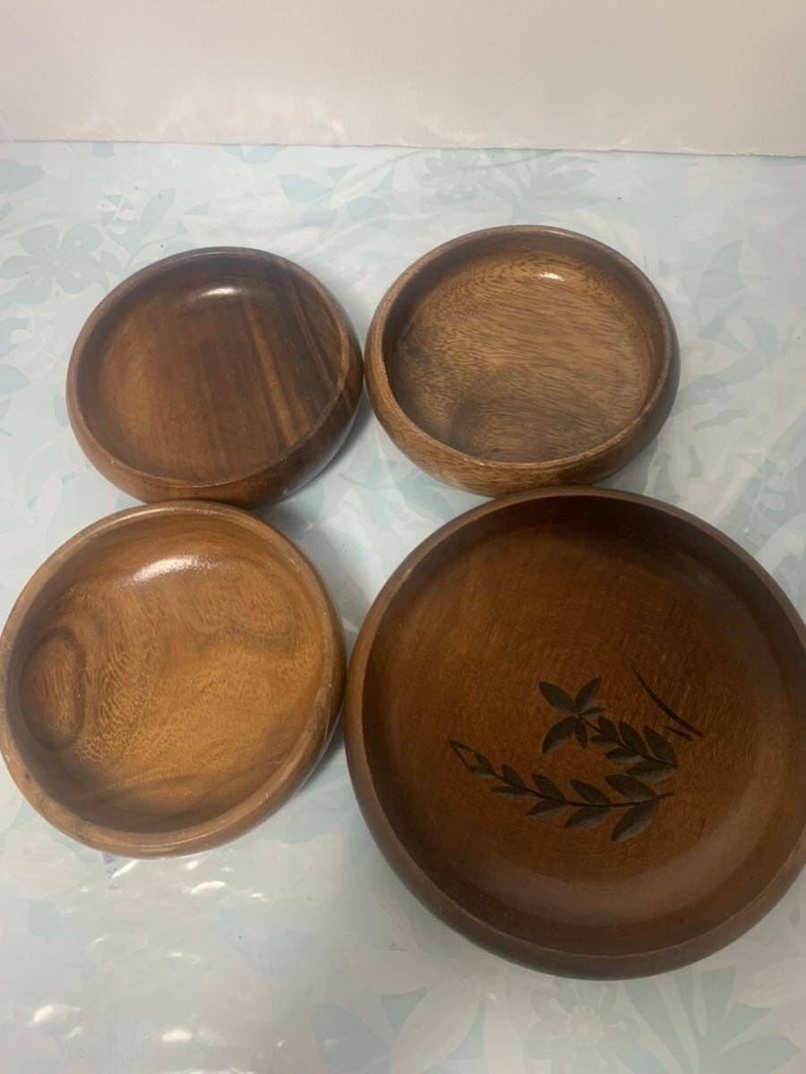- 木製 菓子器4点セット お菓子入れ盆 銘々皿 木鉢
