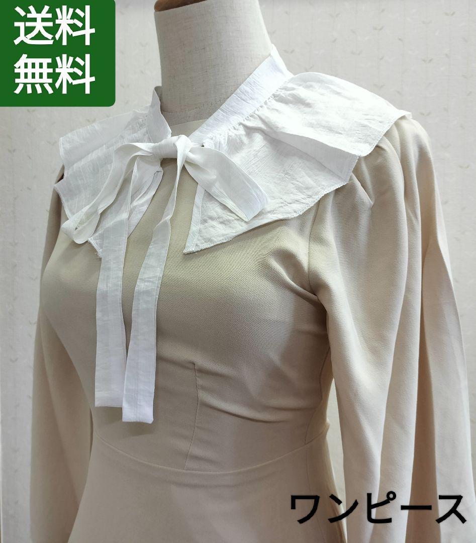 - 【送料無料】レディース 2WAY フリルの襟付き 長袖ワンピース アイボリー【2】