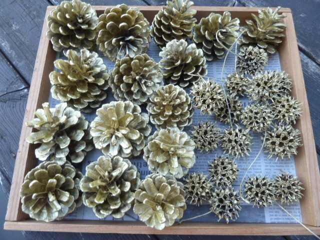 - ◎リース素材 金色マツボックリ ゴールドアメリカフウ 各15個