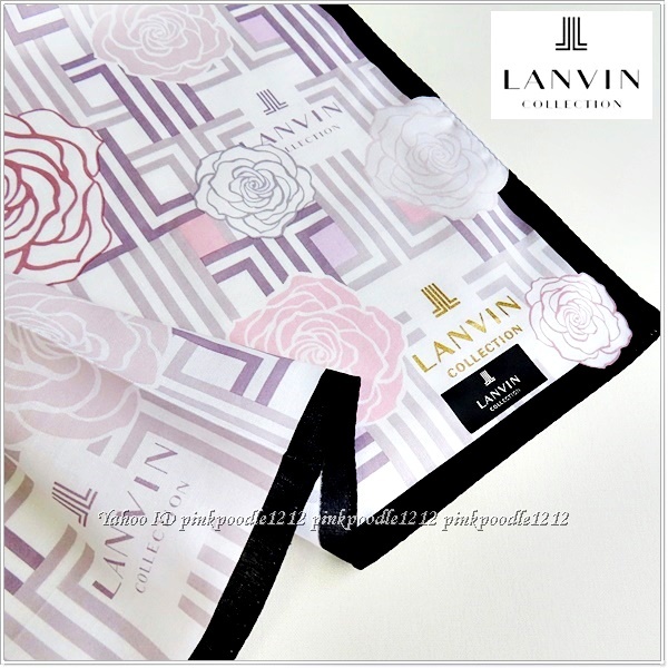 - ◆ランバン 日本製 大判 ハンカチ 未使用◆ランバンロゴ 薔薇◆