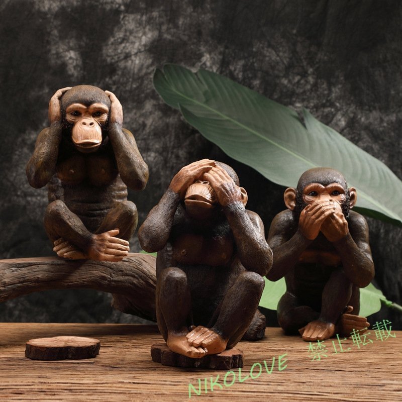 - 新品ゴリラ 3個セット リアル オブジェ 置物 インテリア 雑貨 動物 アニマル 装飾 猿 おきもの 北欧 リビング デコレーション LG274