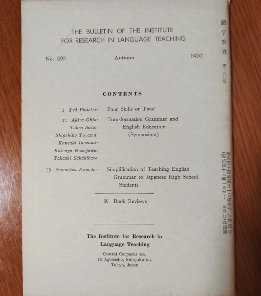 - The Bulletin of the Institute for Research in Language Teaching No. 290 Autumn 1970