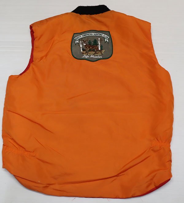 - VE8ナイロンベストUNKNOWNアメリカ古着カナダ製リバーシブルベスト中綿入80'SビンテージL赤系xオレンジ系ライトニングLIGHTNINGパッチ付