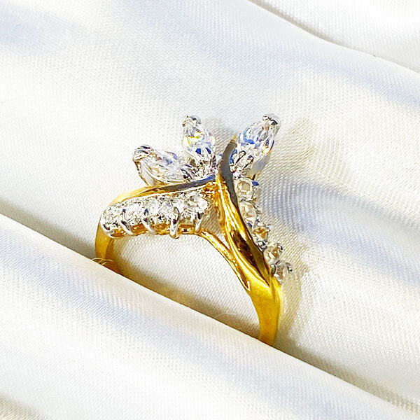 - 送料無料!! 13号 フェザーシェイプモチーフ 18KGP キュービック・ジルコニア CZ デザインリング 指輪 ◇R-0170