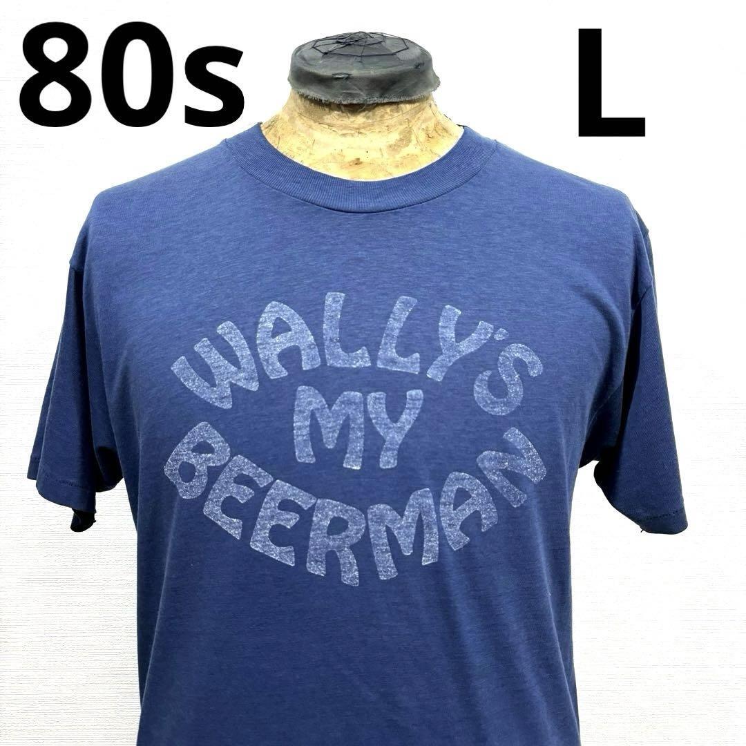 > L 良品 80s 紺 ネイビー Hanes ヘインズ Wally's My Beerman Tシャツ Wally The Beer Man オールド ビンテージ アメリカ アメカジ USA 古着