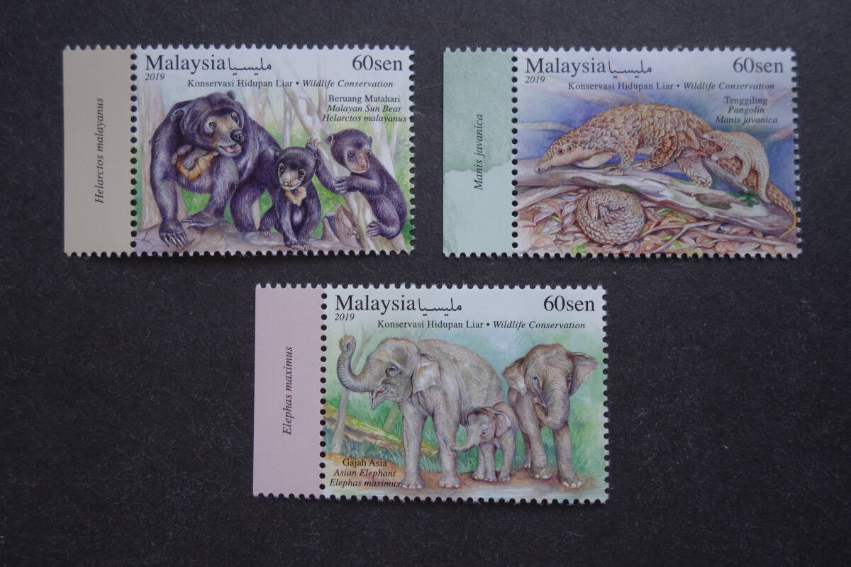 - 外国切手:マレーシア切手 「マレーシアの保護動物」(マレーセンザンコウ など)3種完 未使用