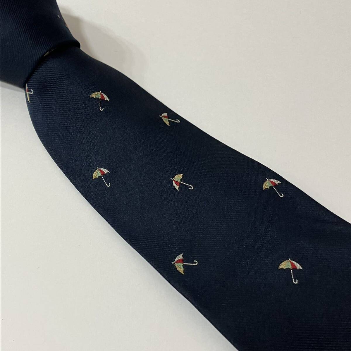 - ヴィンテージ 傘 刺繍 デザイン シルク ネクタイ 国産品 古着 ネイビー 176-1