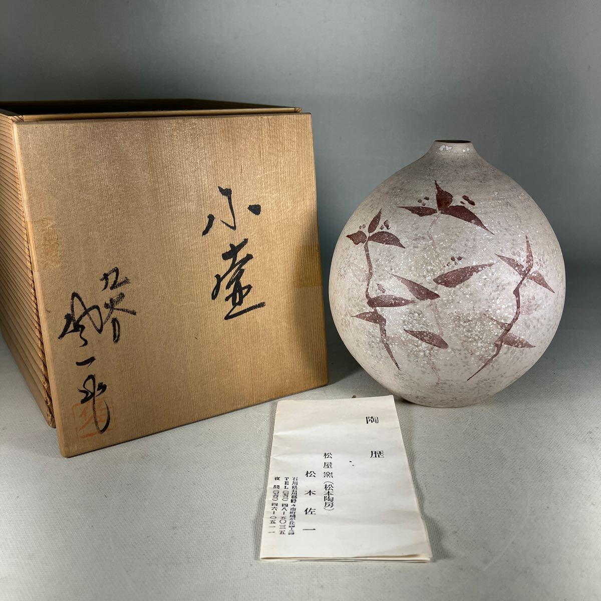 - 松本佐一造 小壺 銀彩 九谷焼 共箱 共布 壷 花生 飾壷