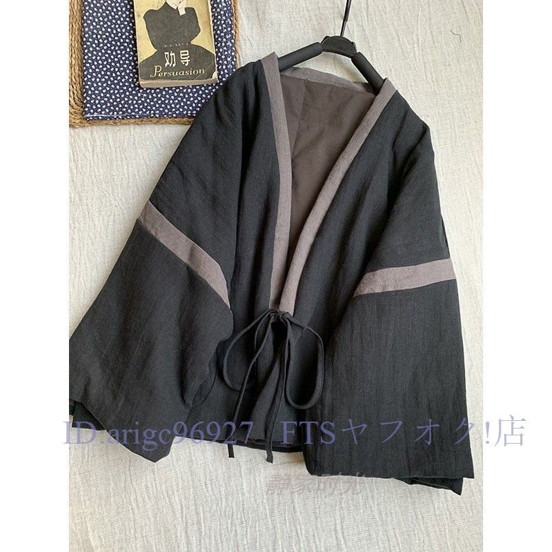- A5868☆新品半纏 襤褸 アンティーク風 コート 綿入り 暖かい 洋服ミックス ロマンファッション 筒袖 ポップ 楽ちん 和服 黒灰色