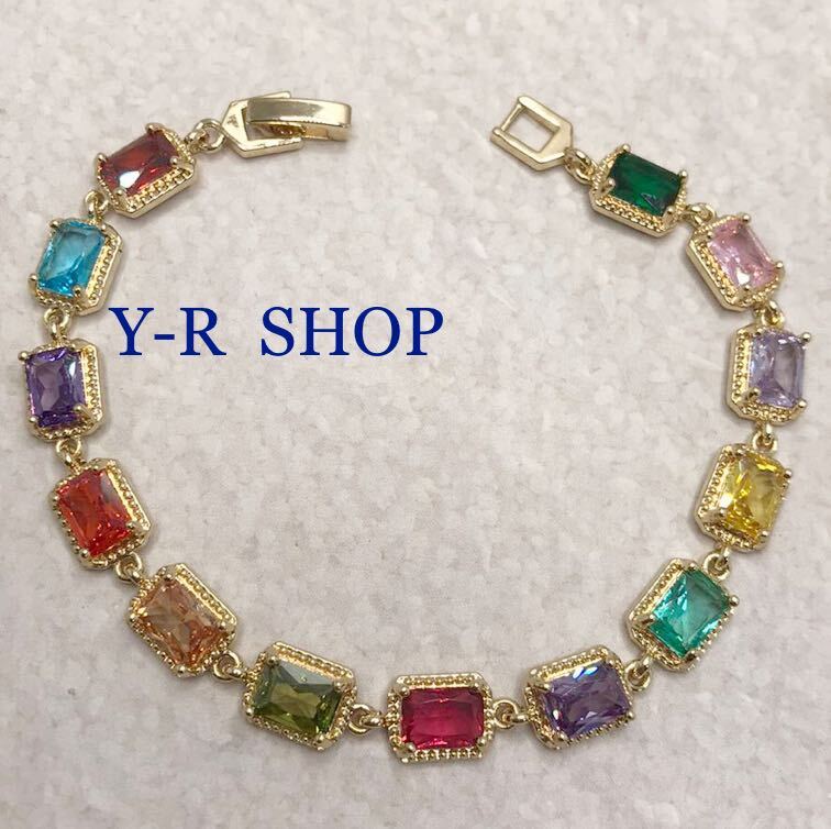 > マルチカラーキュービックジルコニアのゴールドブレスレット★レディース腕輪カラーストーンアクセサリートパーズ新品宝石Y-R SHOP卸売cz