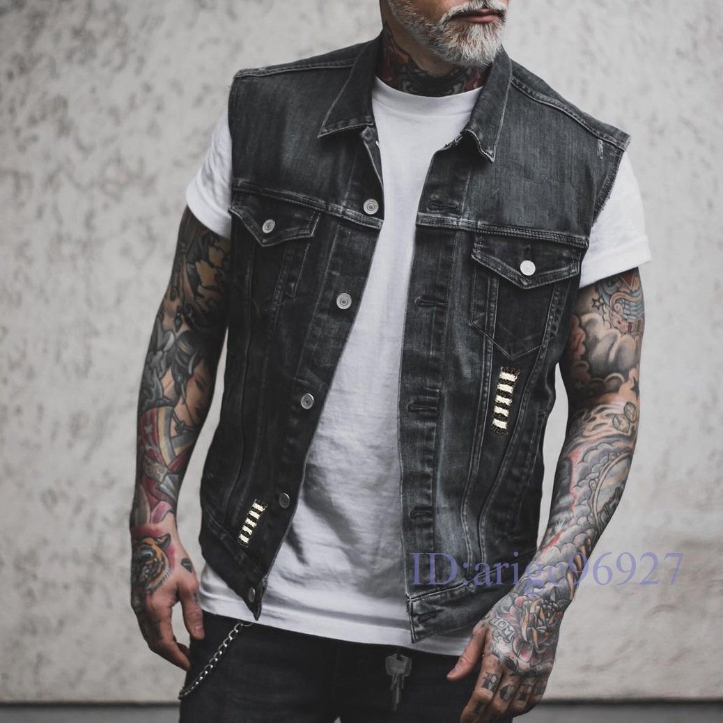 - M817★新品メンズ デニムベスト バイクベスト ライダース ベスト カジュアル チョッキ デニムジャケット タンクトップ Gジャン
