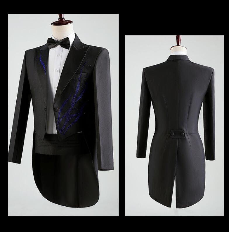 - 上質 新品メンズ スーツ ブルーストーン+黒 上下セット ストーン 燕尾服 タキシード宮廷S M L-3XL演歌 歌手衣装舞台演奏会お色選択可