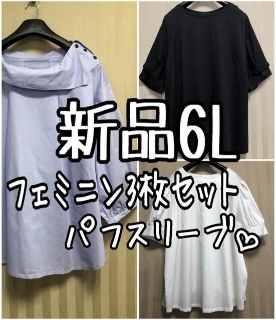 - 新品☆6L♪コットン100%パフスリーブトップス3枚セット☆a962