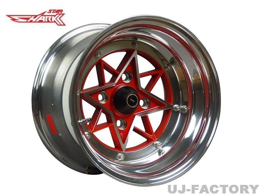 > 【即納!送料無料】復刻版 リアル 3ピースバージョン スターシャーク/レッド 14インチ 114.3-4H 8Jx14-13 x2本+9Jx14-25 x2本