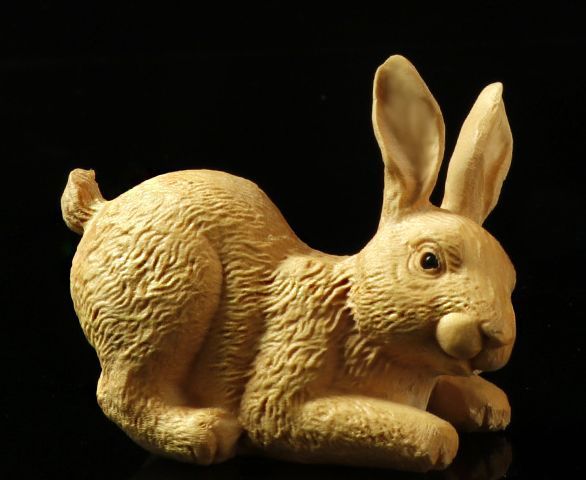 - 【柘植 木彫 動物】 ◆兎ウサギ◆ ナチュラル/天然木製/手作り/ハンドメイド/細工彫刻/インテリア/プレゼント/縁起物