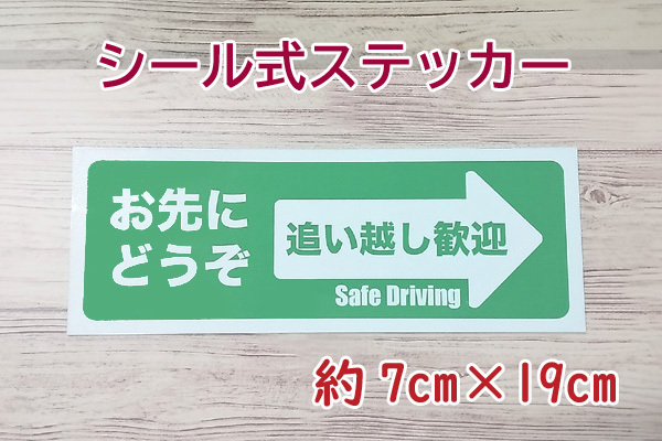 - 【即決・送無】お先にどうぞ ステッカーシール(緑)車用 追い越し歓迎 嫌がらせ あおり予防 ハンドメイド グリーン