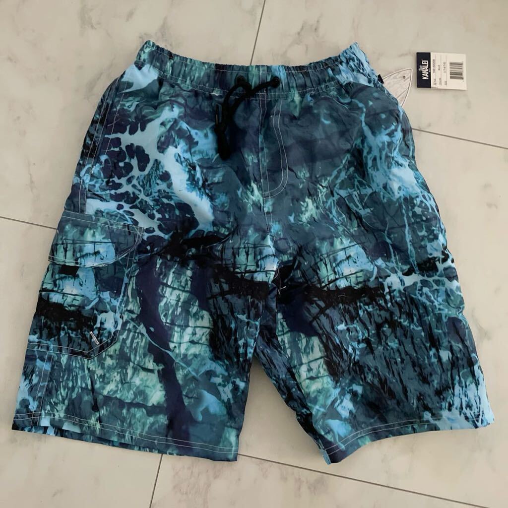 - 新品 KANALEI BAI 水着 総ゴム ショートパンツ ハーフパンツ スイム 海 プール ジュニア 青 ブルー L 14 15 16