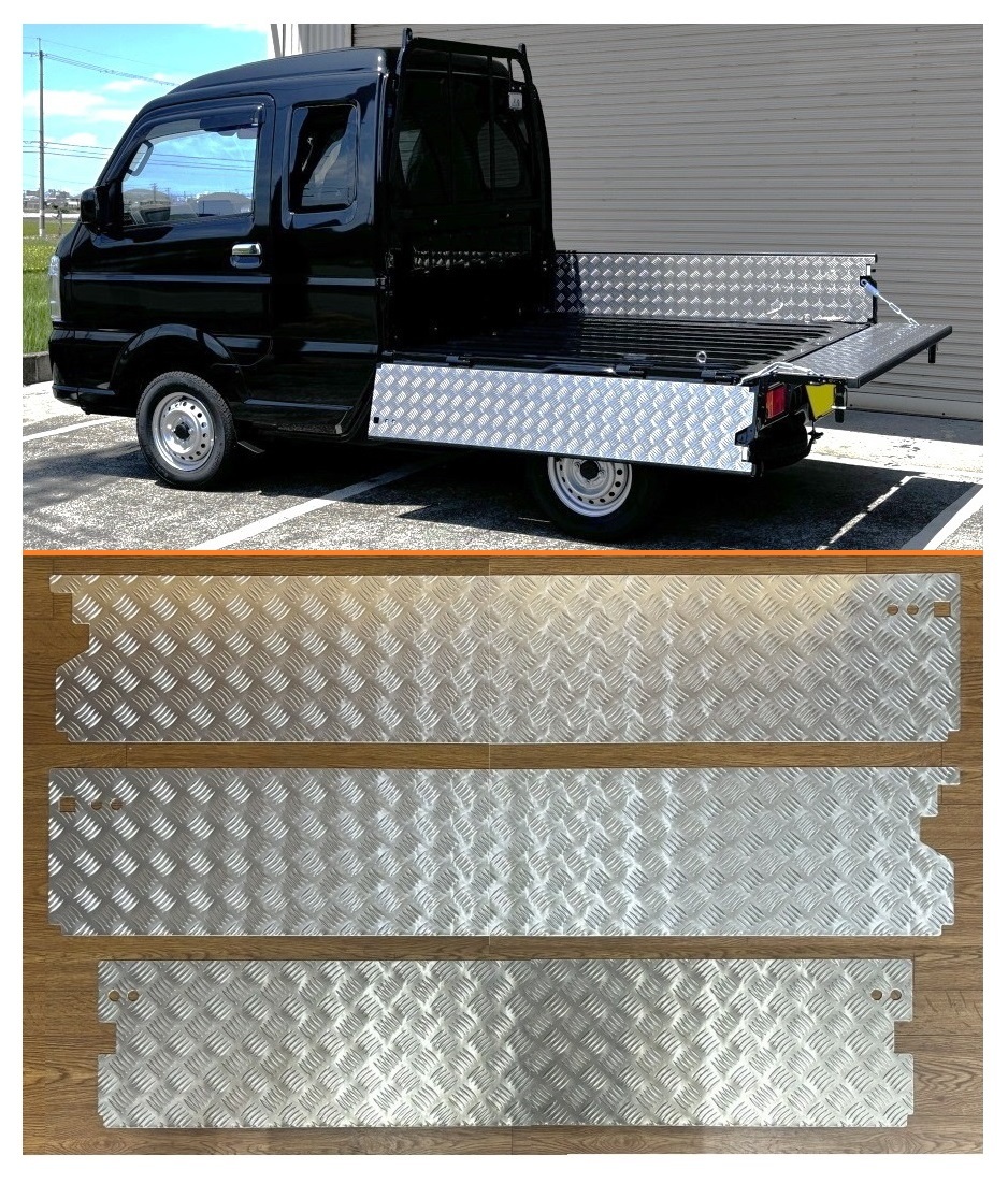 > ★軽トラ アルミ縞板 荷台ゲートインナーパネル 3方SET スーパーキャリイ DA16T(純正ゲートプロテクター付車両) (チェーン付用)