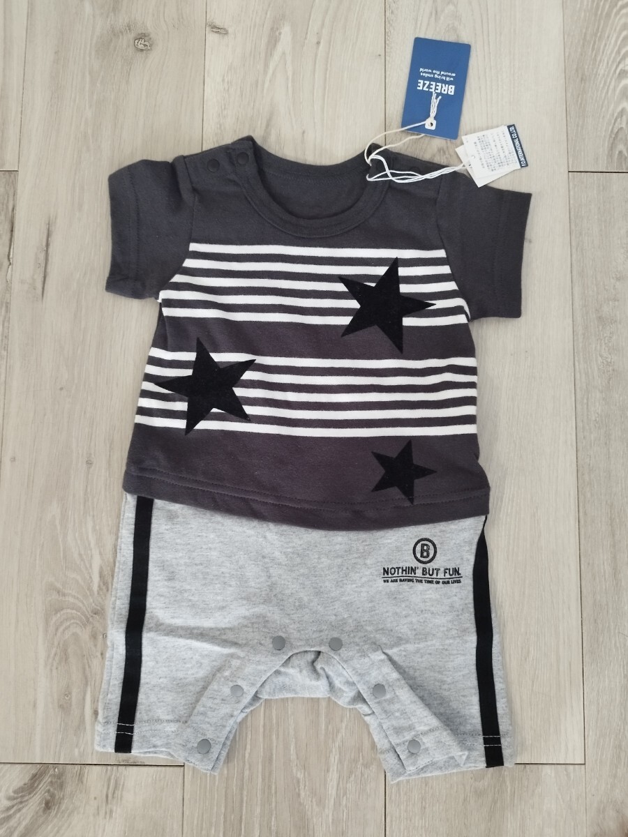 - 定価2900円+税 新品タグ付き BREEZE 半袖ロンパース1枚 70cm 星 黒 グレー