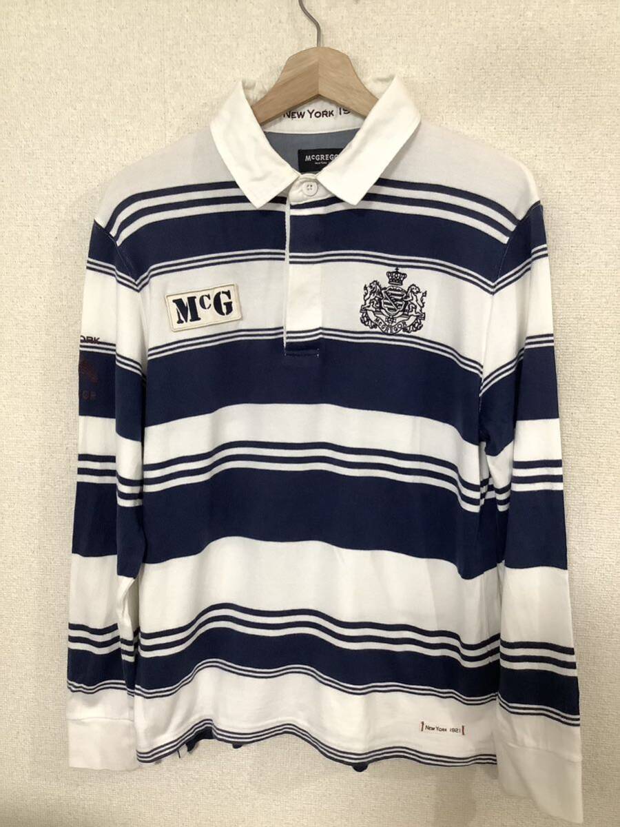 > MCGREGOR マクレガー ボーダー柄 長袖ポロシャツ ネイビー ゴルフウェア レトロ 紳士服 古着 L