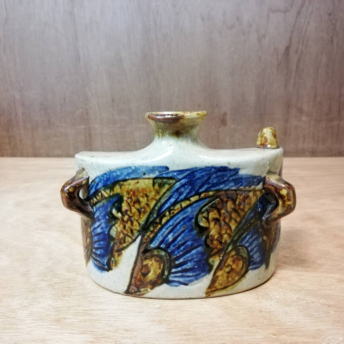 - 古い 魚文 抱瓶 だちびん 壺屋焼 やちむん 琉球 沖縄 酒器 徳利