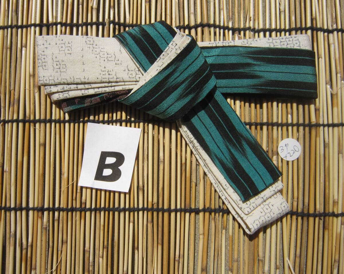 > ◇◆正絹・古布 お召縮緬・矢絣織り出し古布+縫い取り柄+紬 リメイク タスキ掛け紐28-B オリジナル