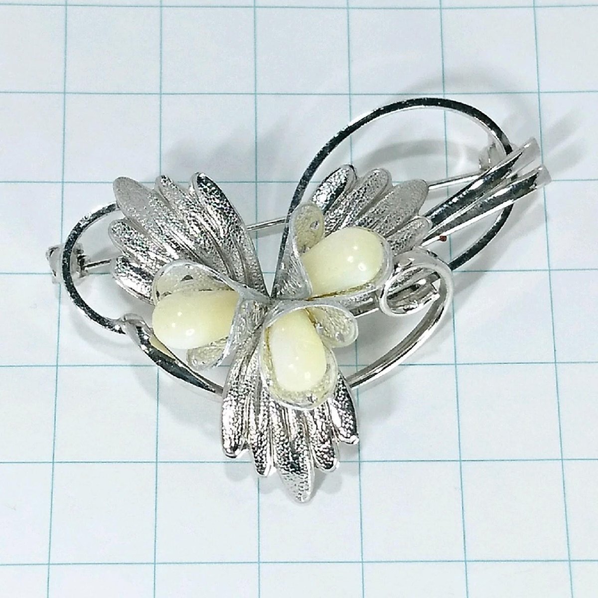 - 送料無料)ビンテージ☆白 お花モチーフ☆アンティーク ブローチ A26126