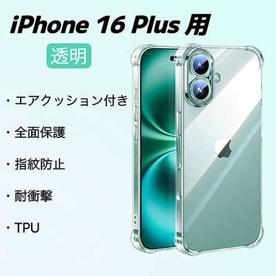 - iPhone 16 Plus 用 スマホケース ケース 一体型カメラレンズ部分保護 エアバッグ 透明 クリア 保護カバー 指紋防止 耐衝撃