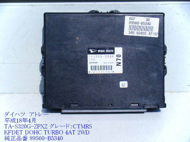 - ◆S320G TA-S320G ダイハツ アトレー カスタムRS エンジンコンピューター FEDET 4AT ターボ 89560-B5340 ジャンク[12936]