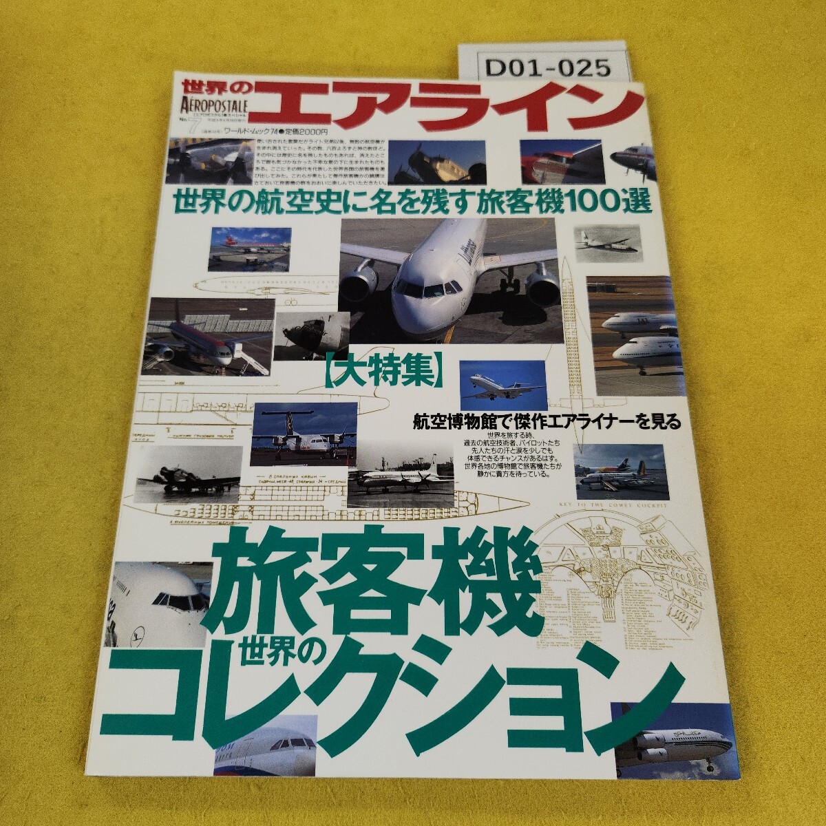 > D01-025 世界のエアラインNo.7 世界の航空史に名を残す旅客機100選他 ワールドフォプレス 平成8年6月発行 日焼け角傷あり。